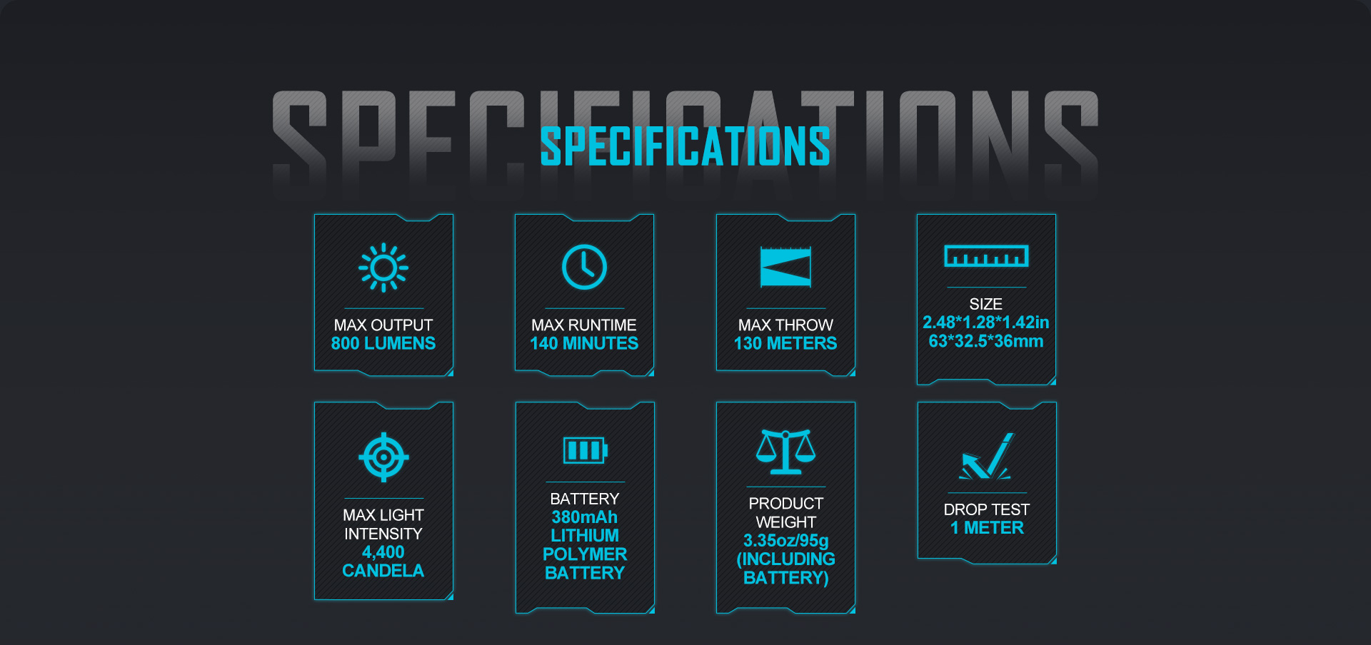 - [𝗠𝗮𝘅 𝗥𝘂𝗻𝘁𝗶𝗺𝗲] The weaponlight with built-in 3.7V 380mAh lithium polymer battery takes only 80 minutes to fully charge, ensuring a max runtime of 140 minutes when the light is set to 100 lumens