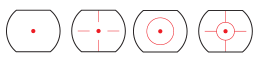 • RED and GREEN colored Four Reticle set: Dot, Star Burst, Cross, Bullseye